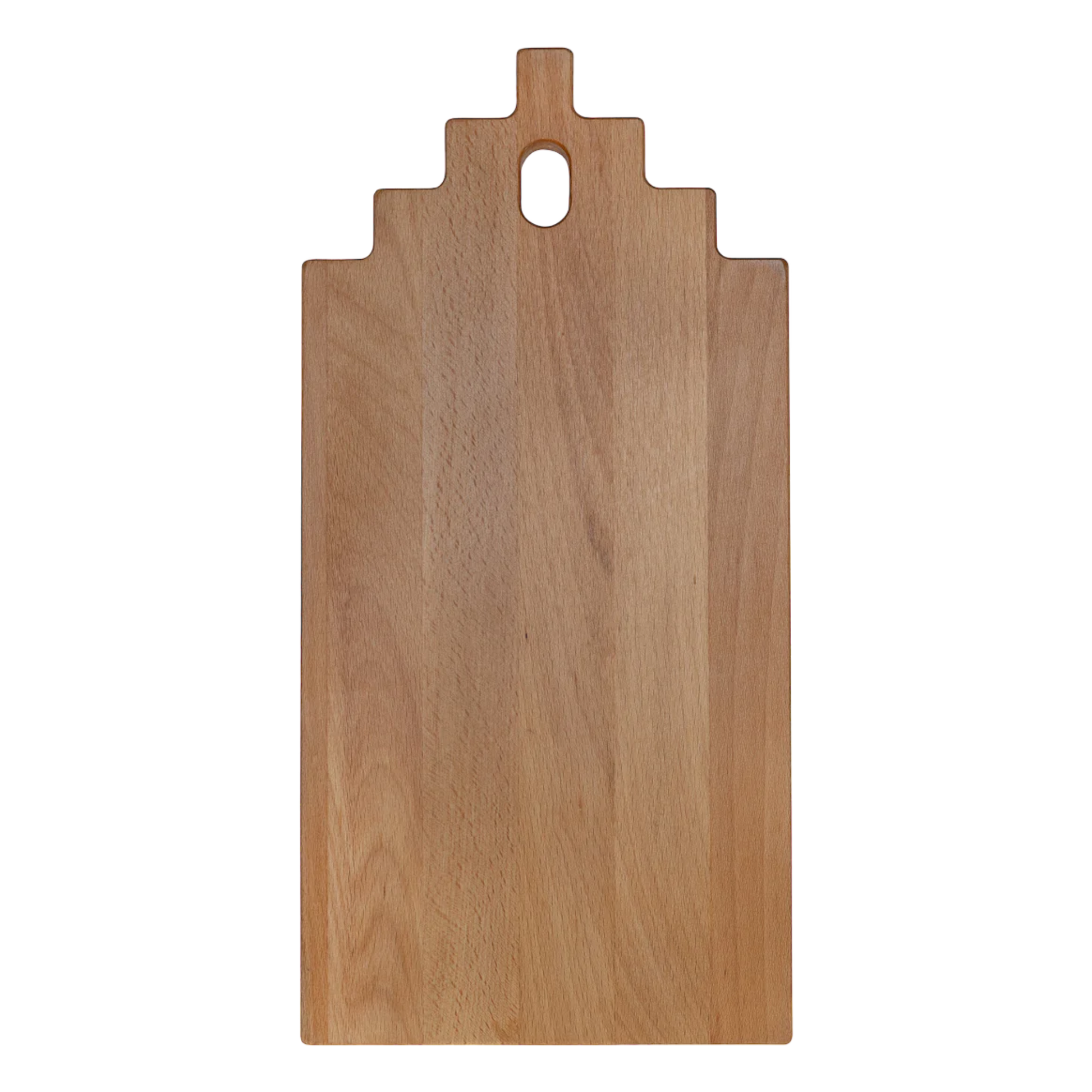 Een prachtige plank van beukenhout in de vorm van een trapgevelhuisje is een waar kunstwerk dat de aandacht trekt van iedereen die het ziet. Met afmetingen van 35 bij 17 centimeter is het niet alleen een prachtig decoratief item, maar het kan ook een nuttige functie hebben als boekensteun.