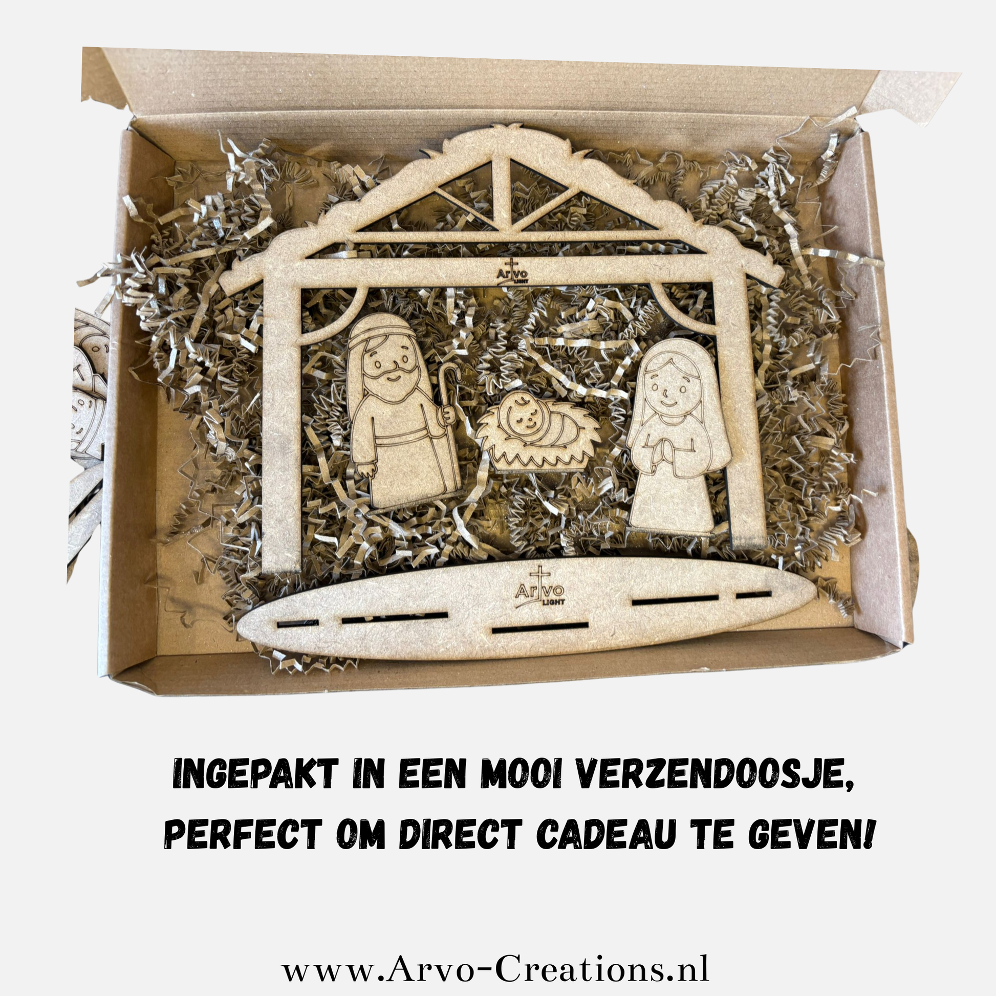 Laat het licht van kerst schijnen in huis en beleef het kerstverhaal op een creatieve en warme manier met deze bijzondere kerststal van Arvo Light.