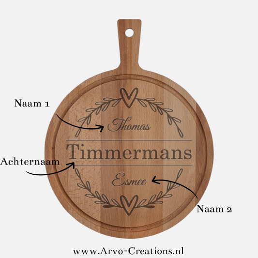Personaliseerbare Houten Borrelplank met Olijftakjes en Hartjes rond