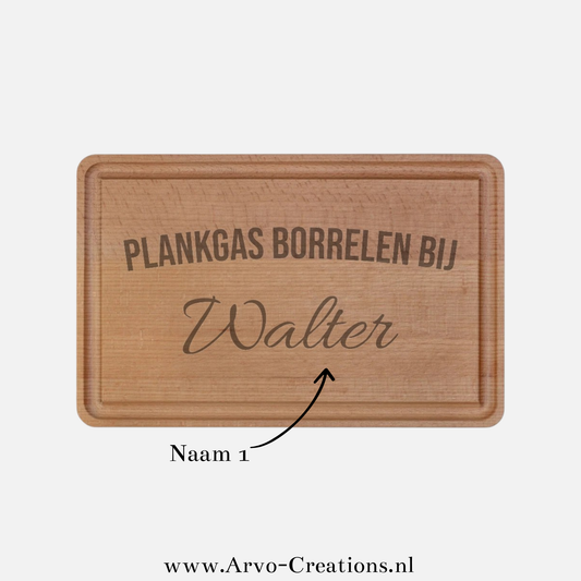 Kies een mooi ontwerp uit, en personaliseer de borrelplank makkelijk en snel.