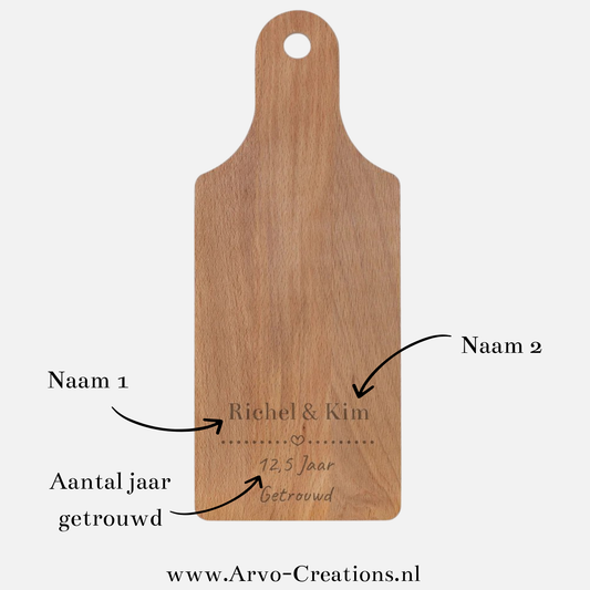 Gepersonaliseerde Jubileumplank met Namen, Hartje en Aantal Jaren Getrouwd