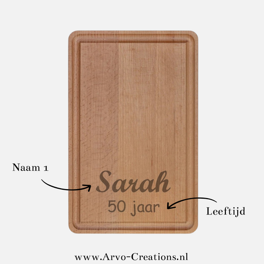 Personaliseerbare Houten Borrelplank Margriet. Naam en leeftijd